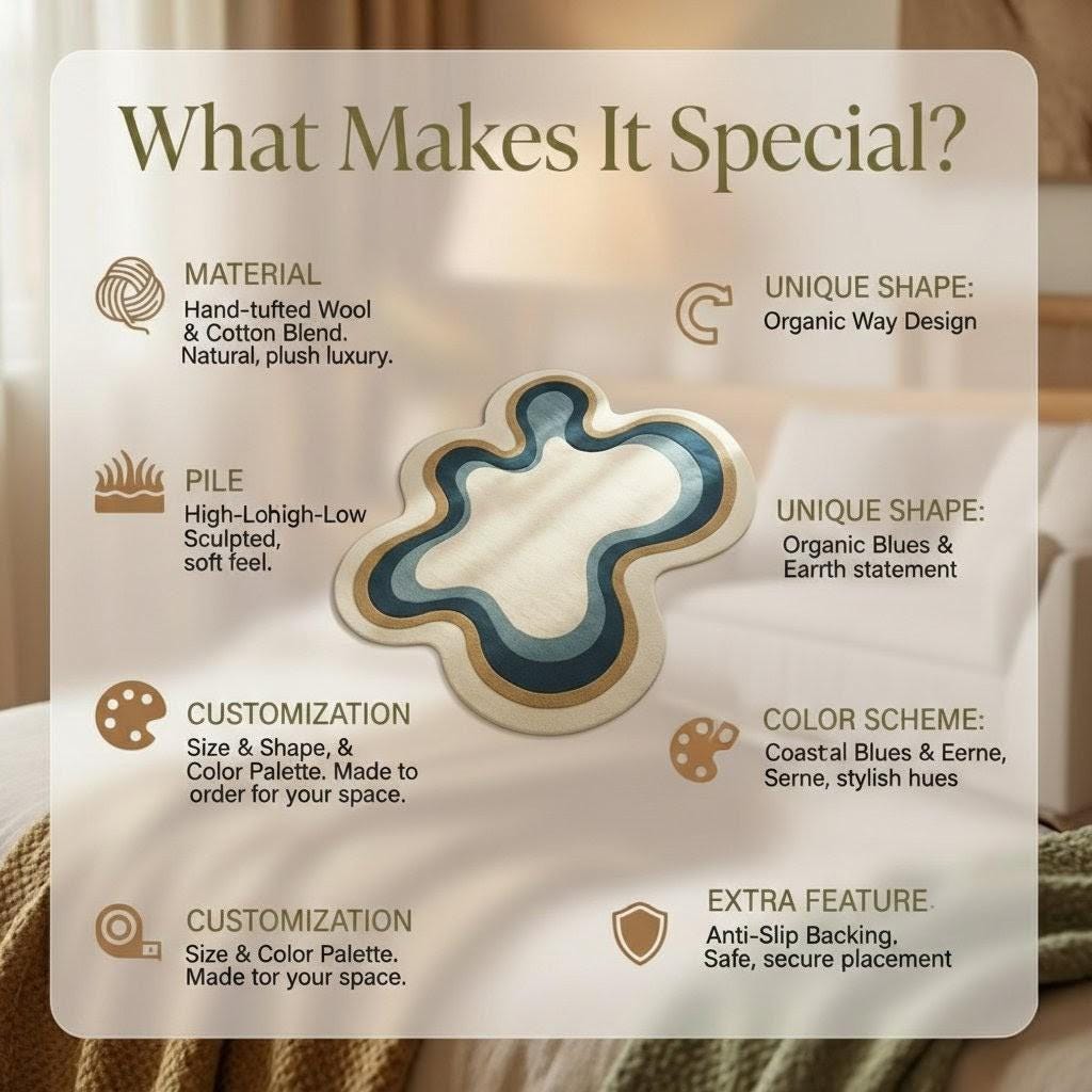 💬 Simply message us on Etsy to start your bespoke rug journey. We’ll share ideas, visuals, and updates until your dream rug is ready.