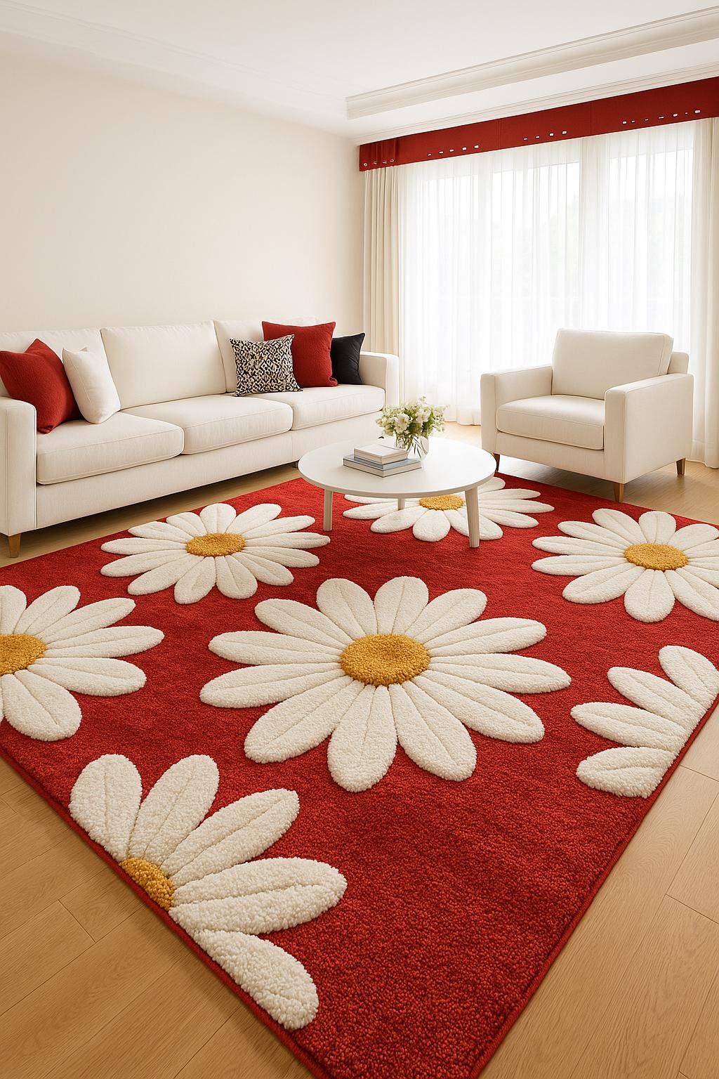 • Size: Any dimensions available — from small bedside mats to large living room carpets.
