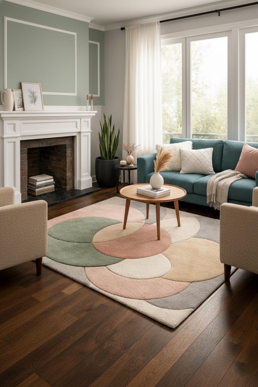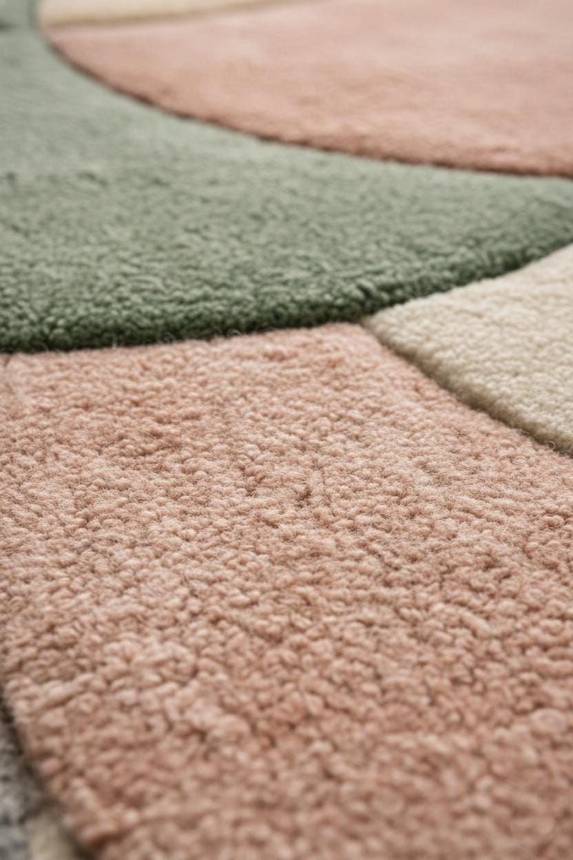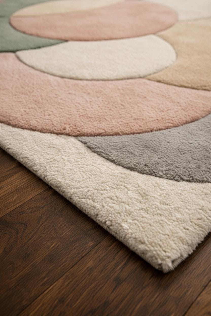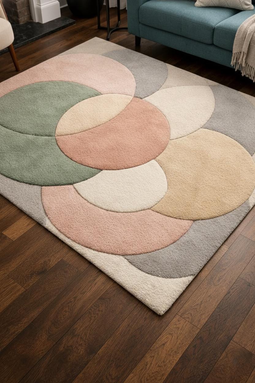 Hand Tufted Wool Rug, Abstract Circle Design, Modern Pastel Carpet