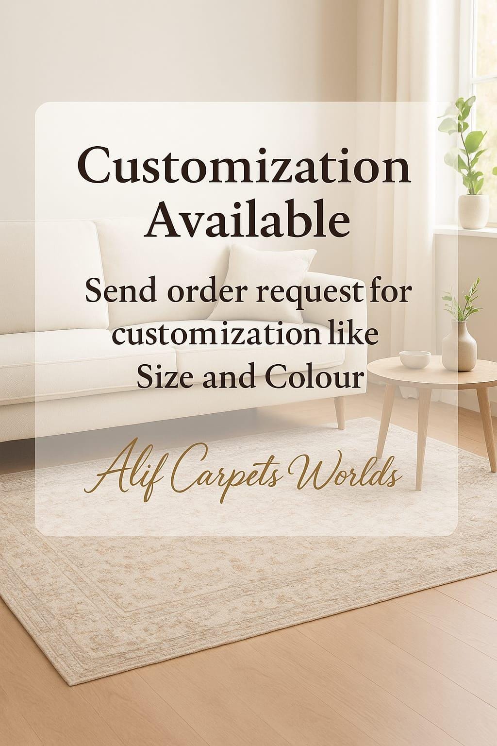 • Size: Any dimensions available — from small bedside mats to large living room carpets.