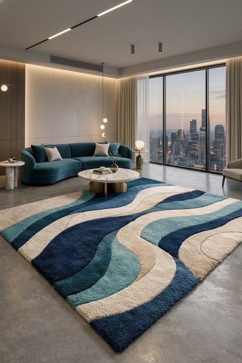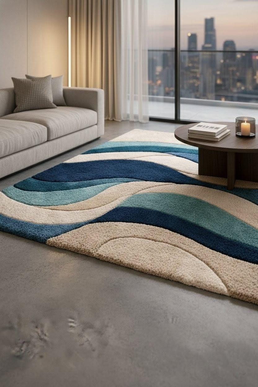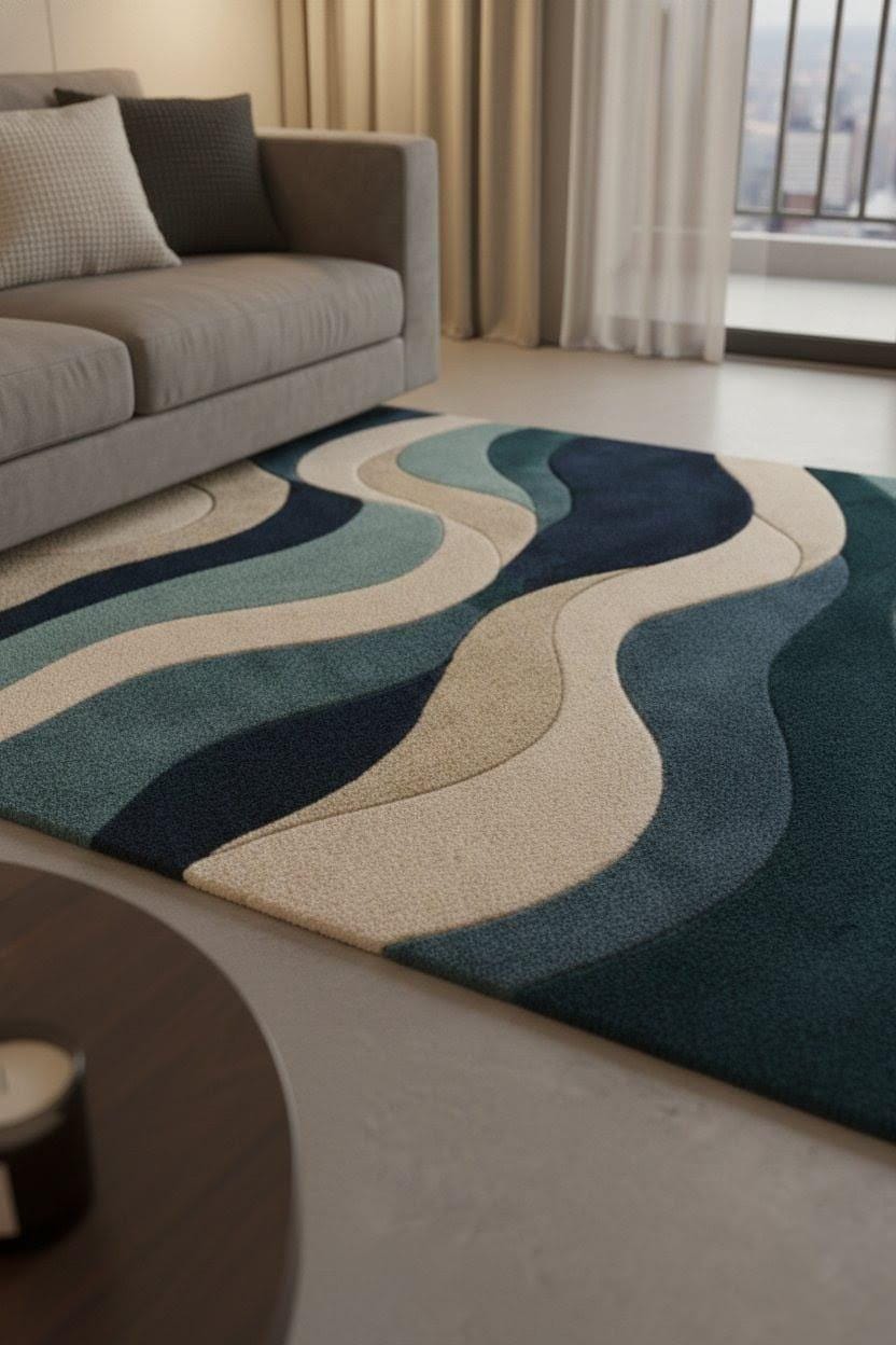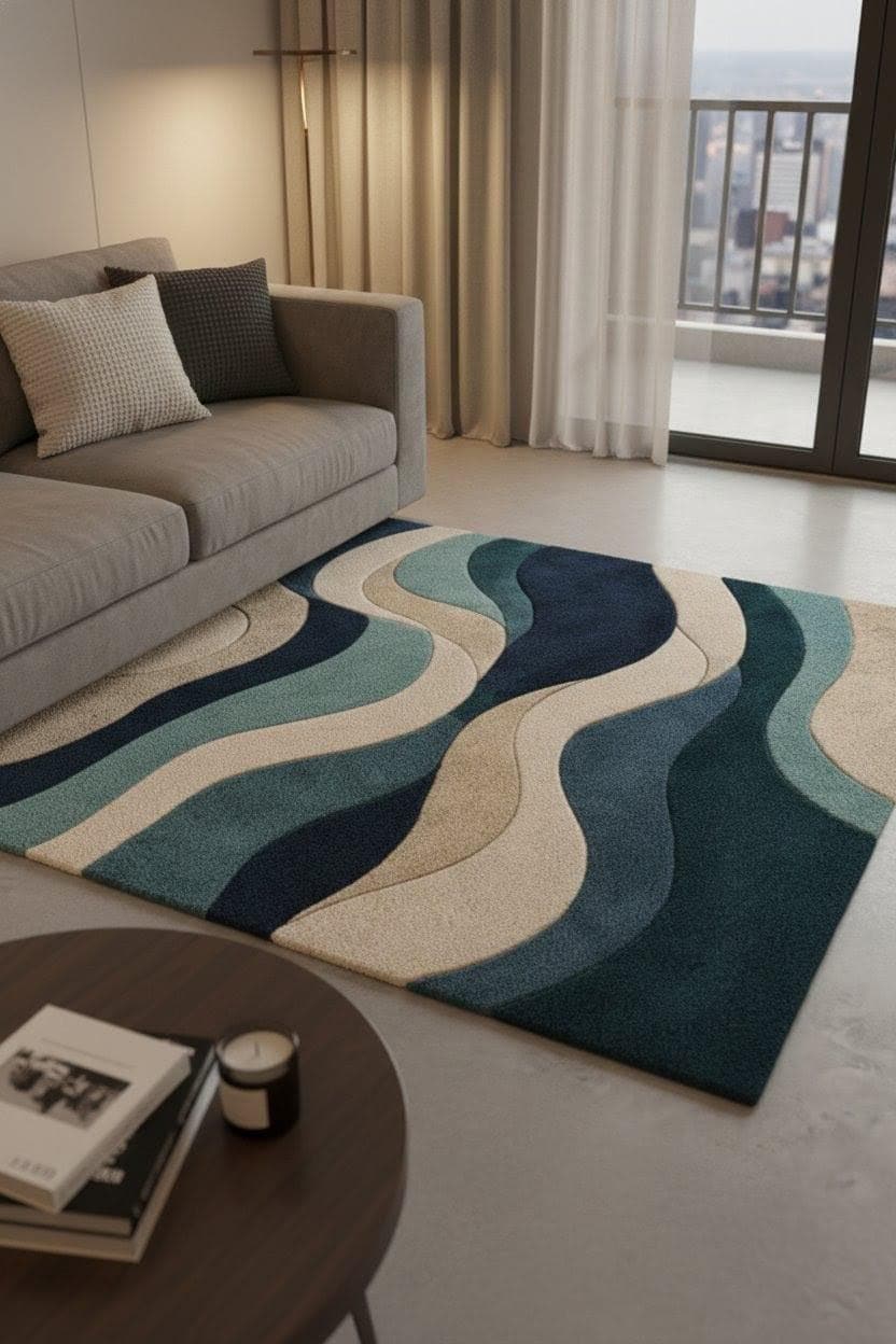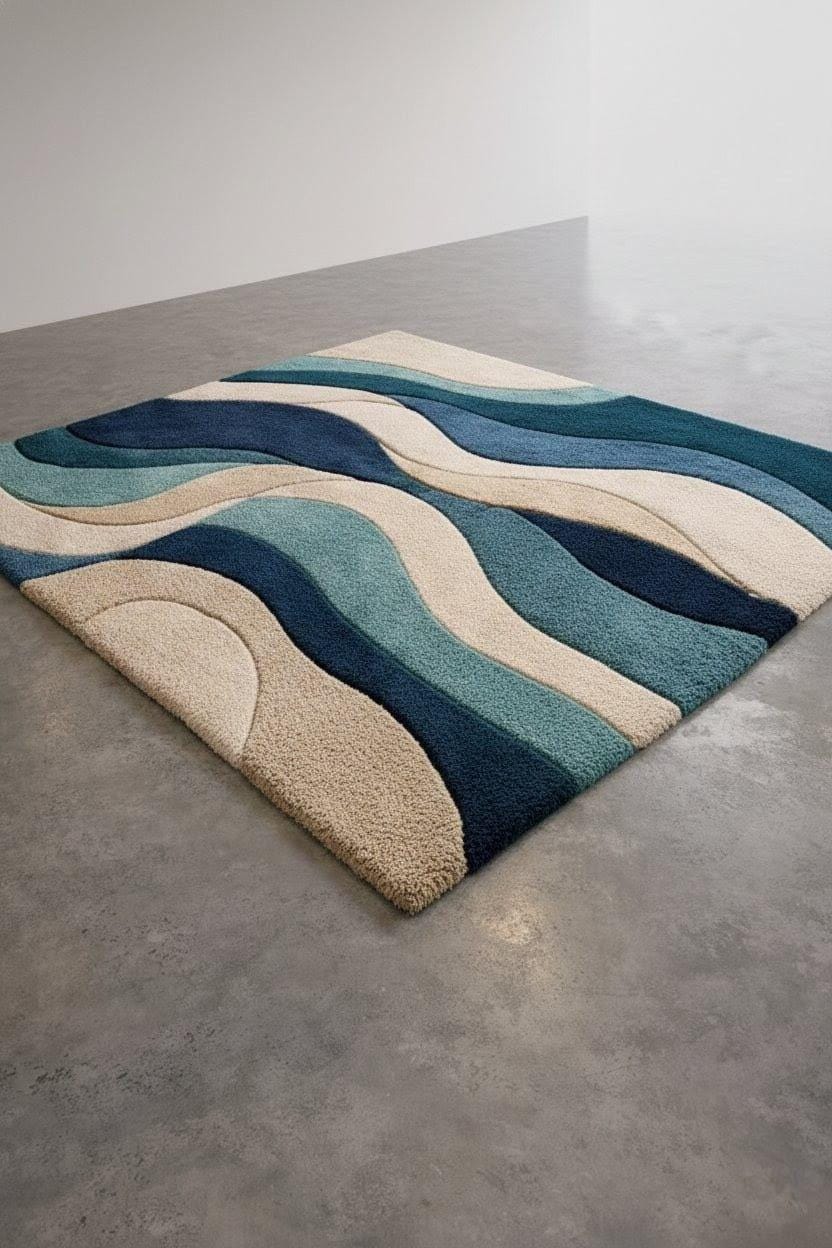 Bring calm movement and luxury into your space with this hand-tufted abstract wave rug, designed to elevate modern interiors.