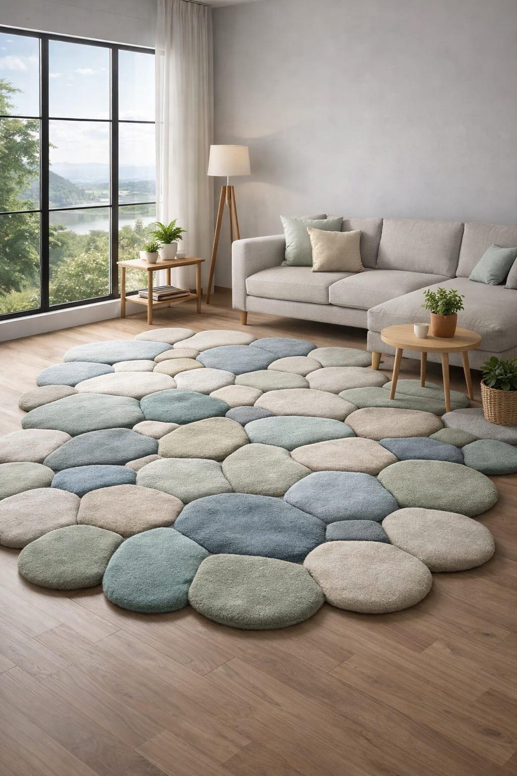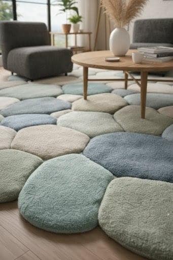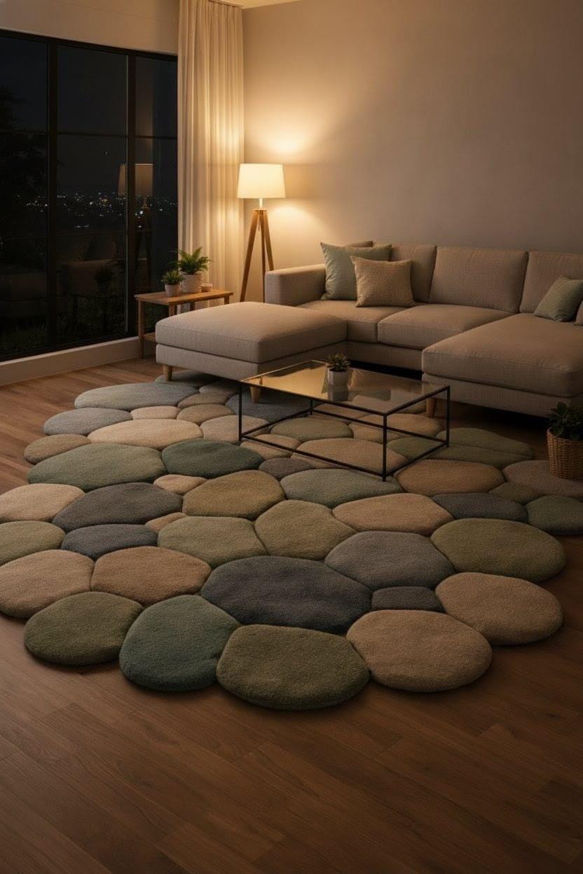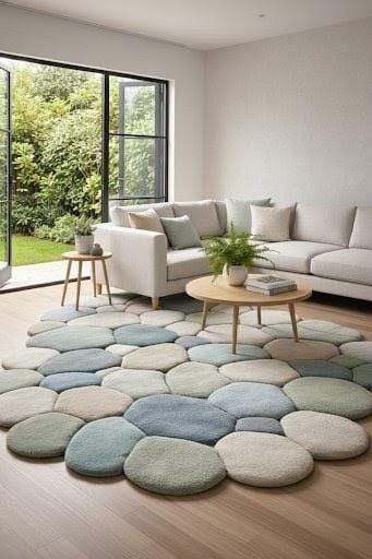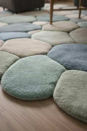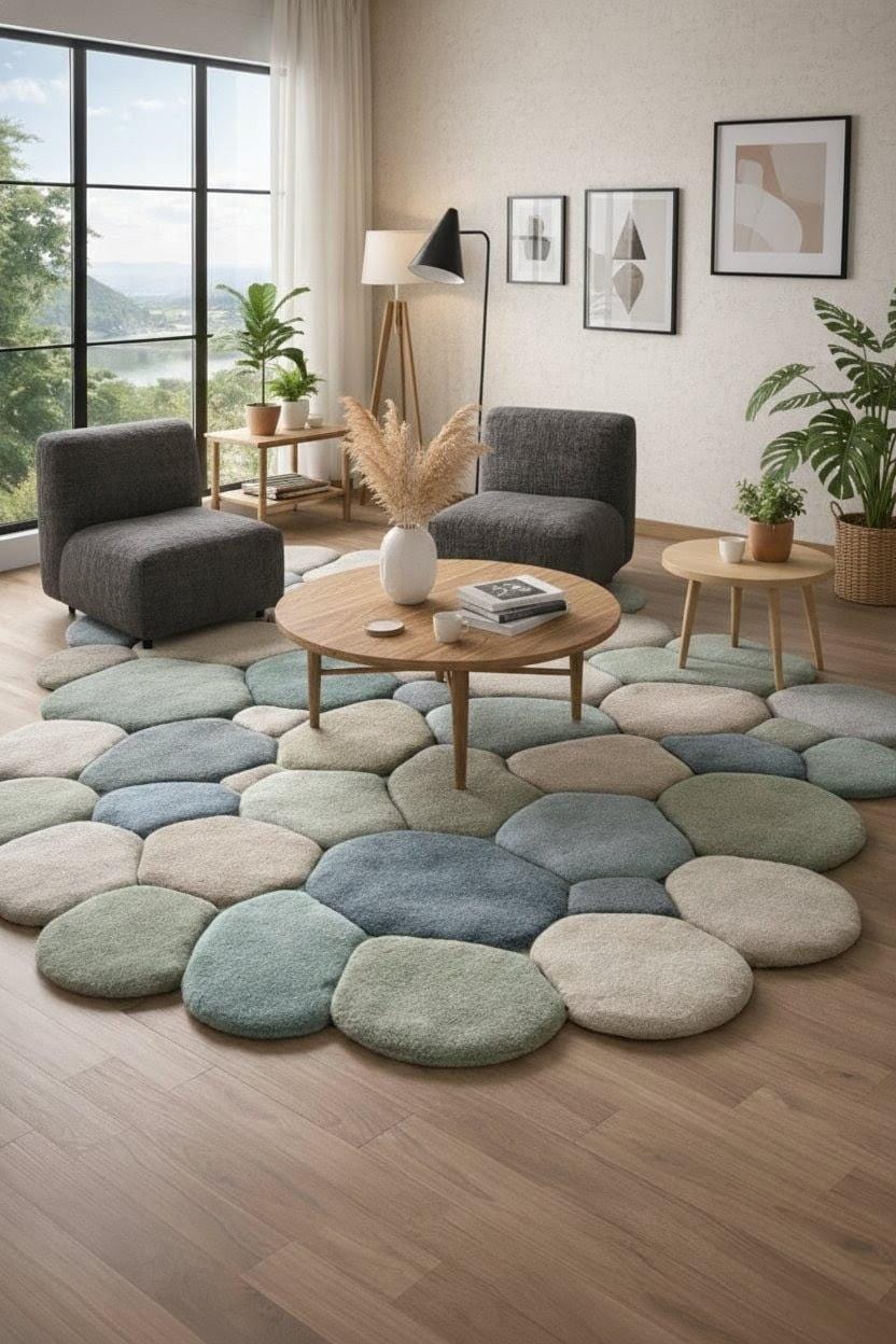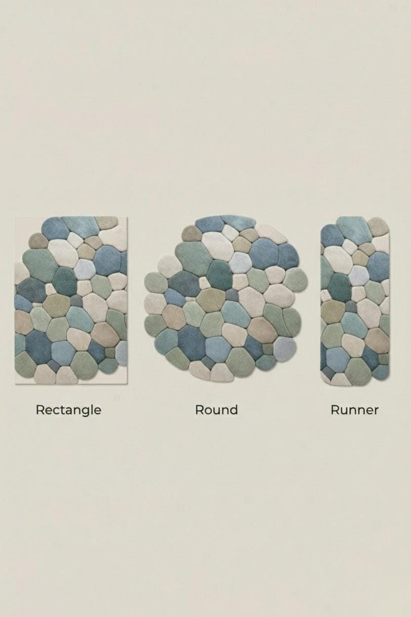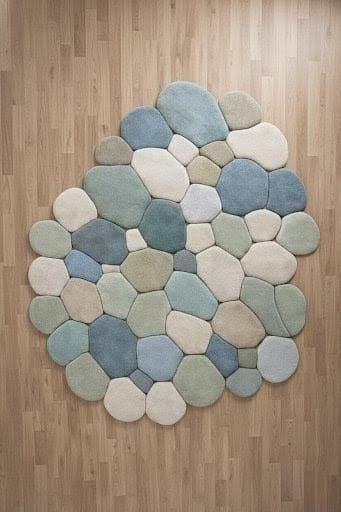 Bring calm, comfort, and modern elegance into your home with this handmade pebble-shaped wool rug, inspired by nature’s smooth river stones.