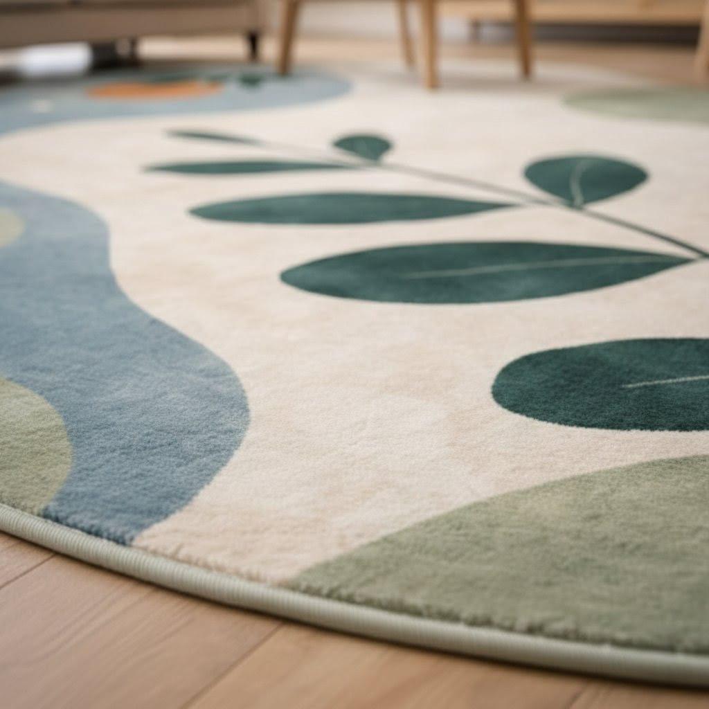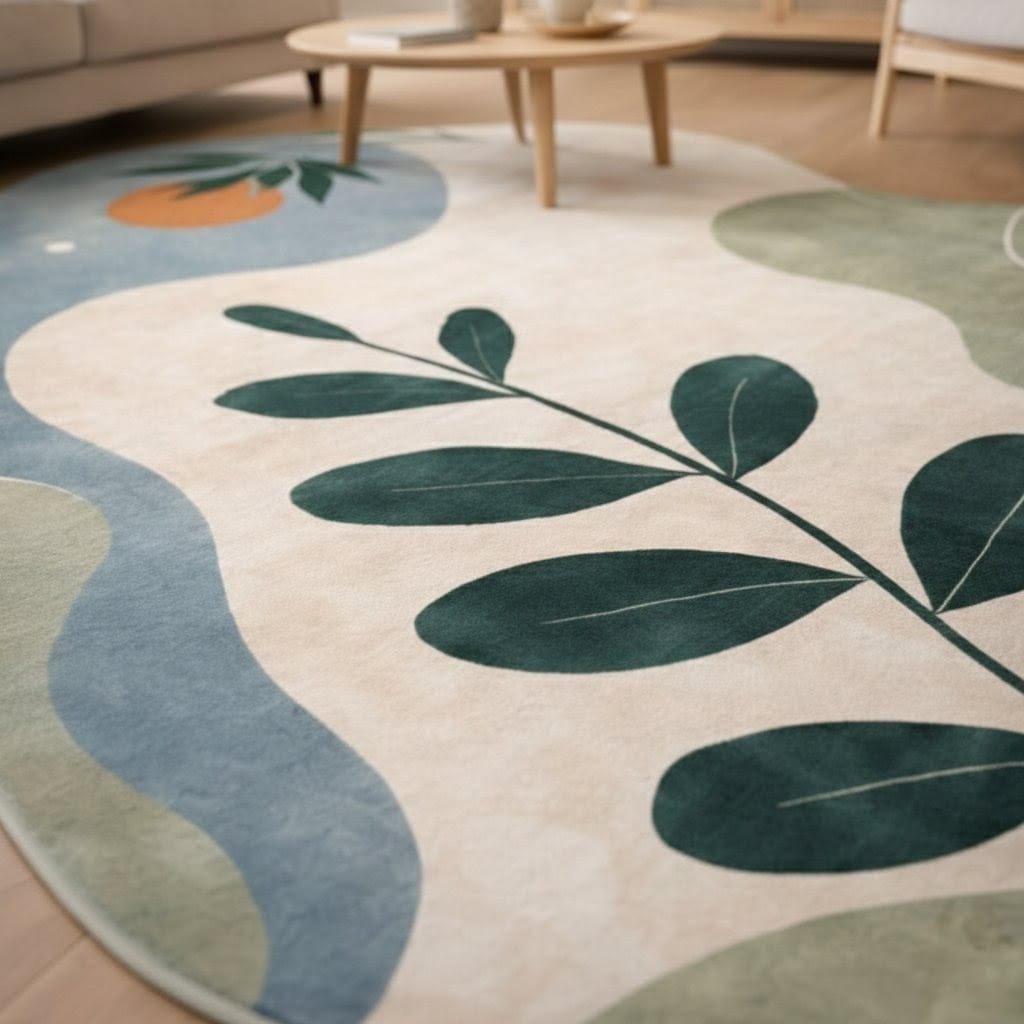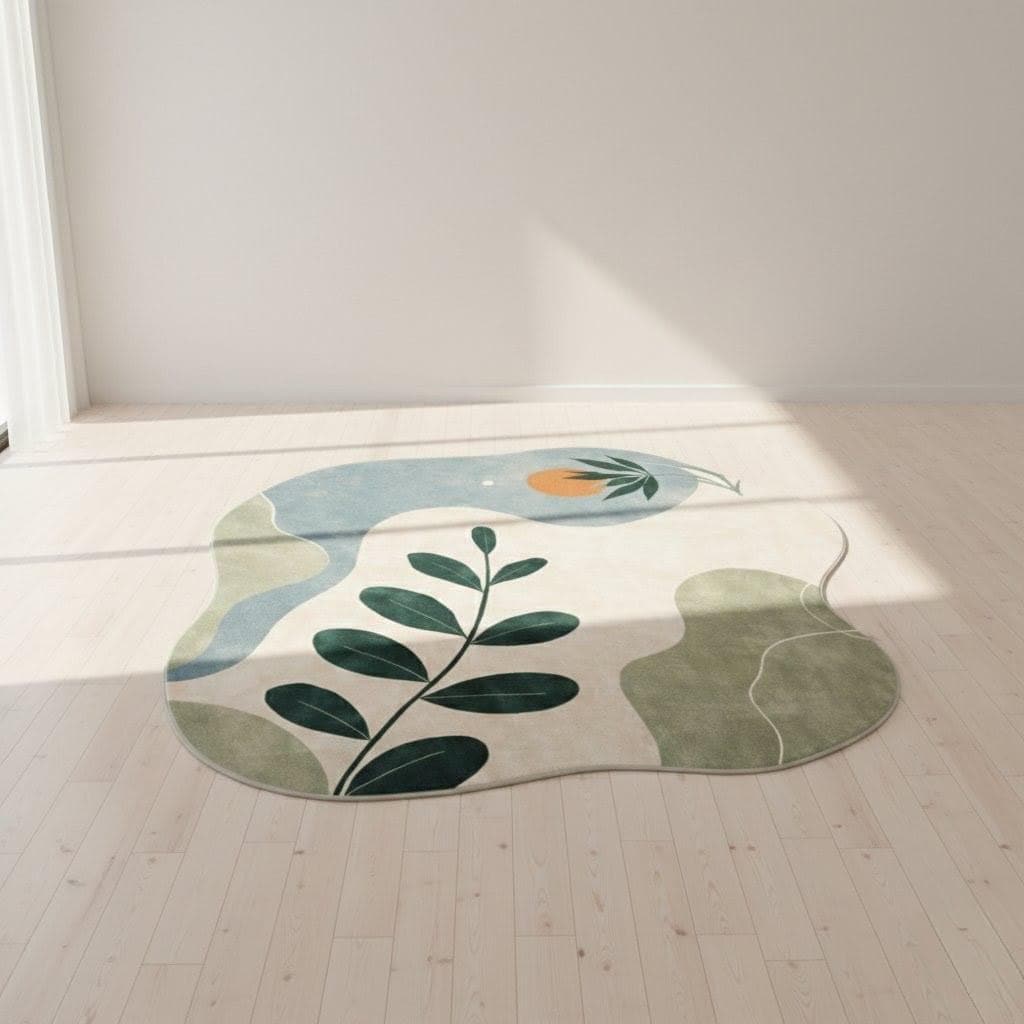 This abstract botanical area rug is designed for homes that love nature-inspired beauty with a modern twist.