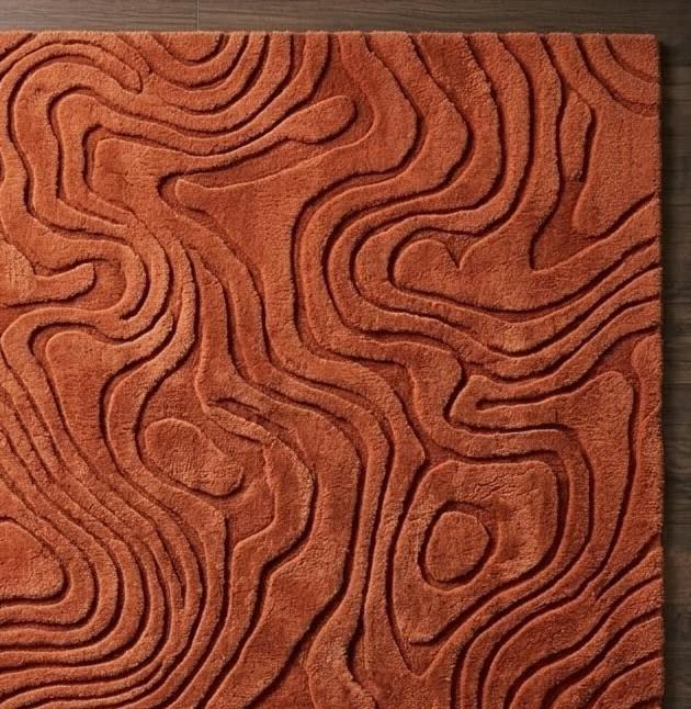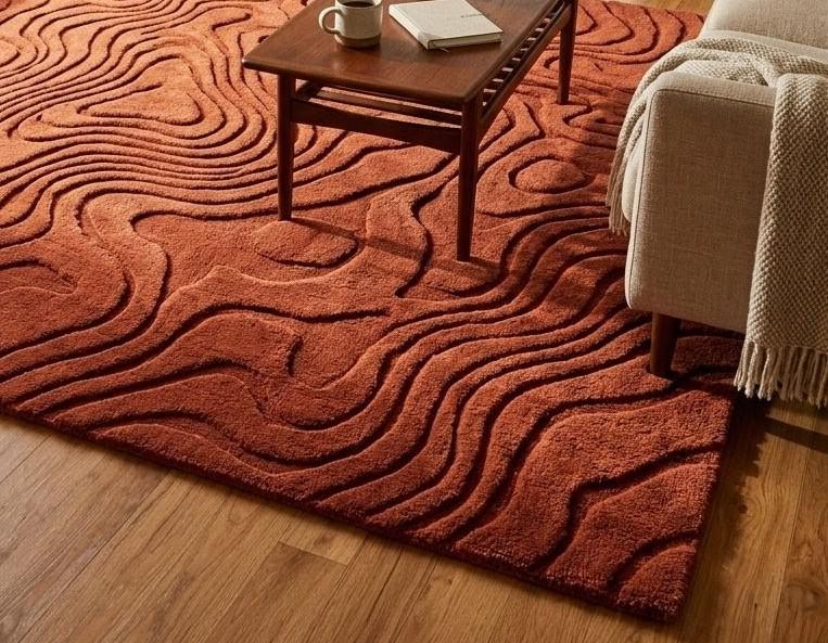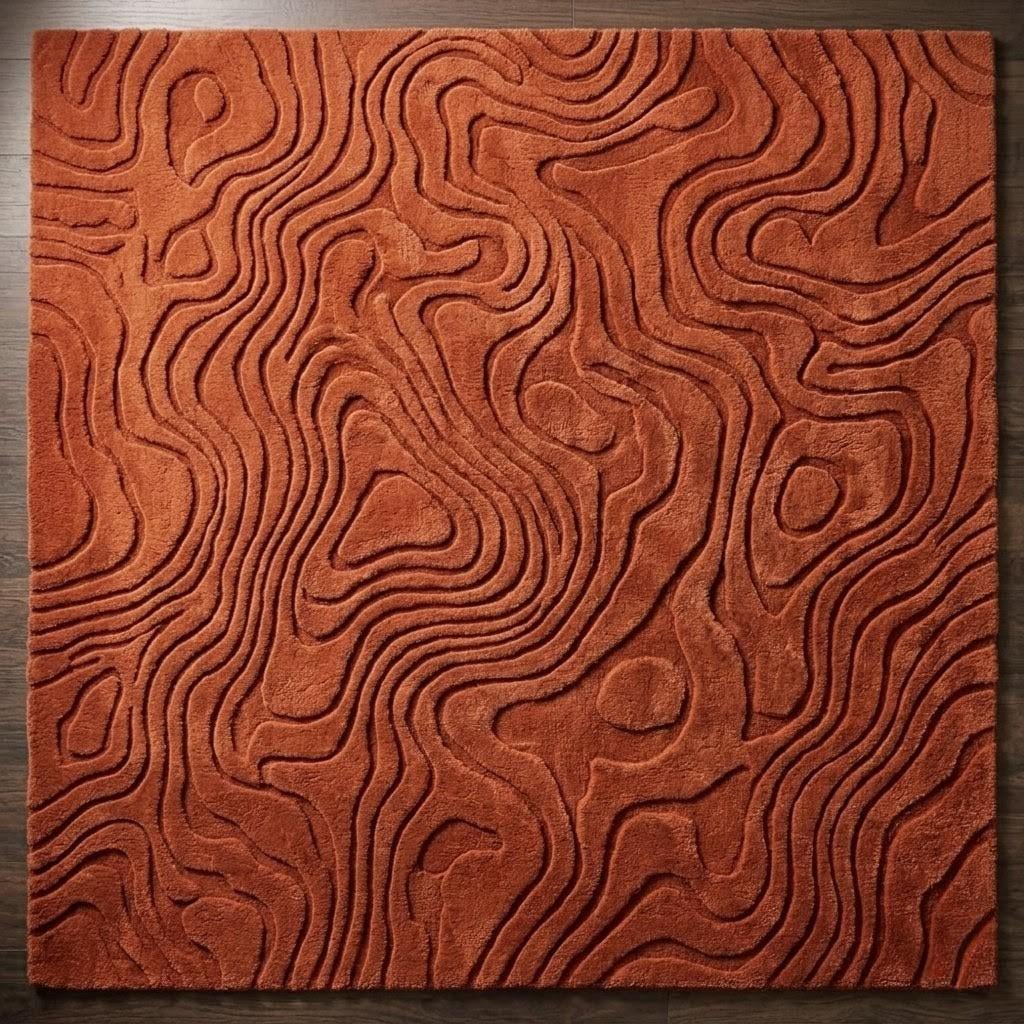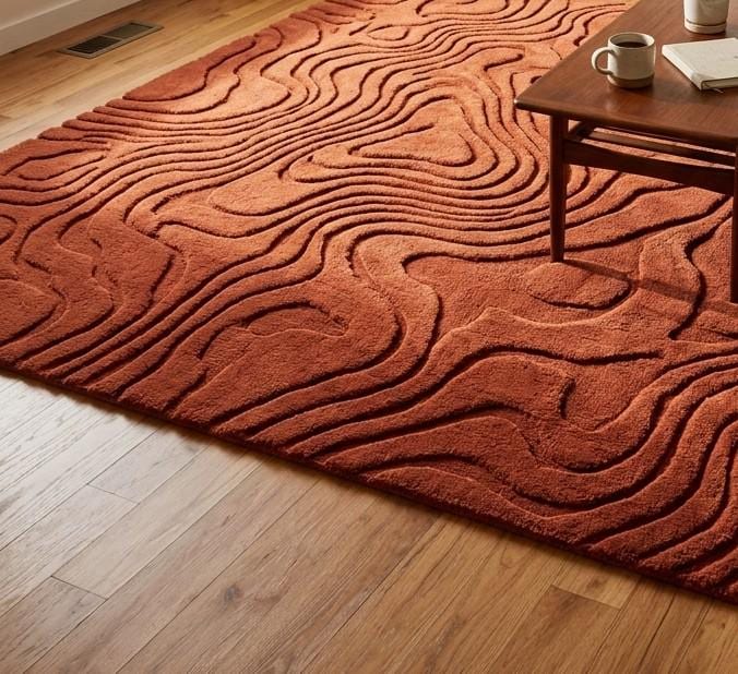 Rust Orange Topographic Wool Rug – Hand Tufted Abstract Wave Carpet