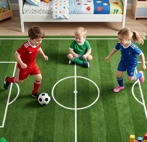 ​Designed to spark joy and movement, this rug features a classic football pitch layout with crisp white markings against a deep stadium-green background. Its clean lines and athletic aesthetic make it a versatile fit for modern nurseries, playrooms, or even a themed man-cave.