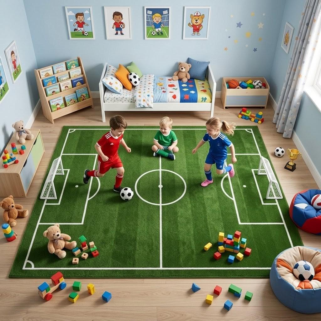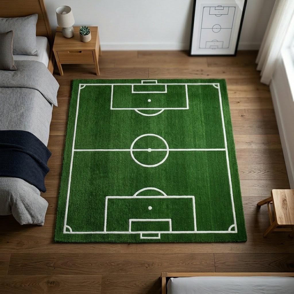 ​Every rug is meticulously hand-tufted by skilled artisans using 100% premium wool. Unlike synthetic play mats, our natural wool fibers offer superior longevity and a high-end feel that stands up to years of "match day" action.